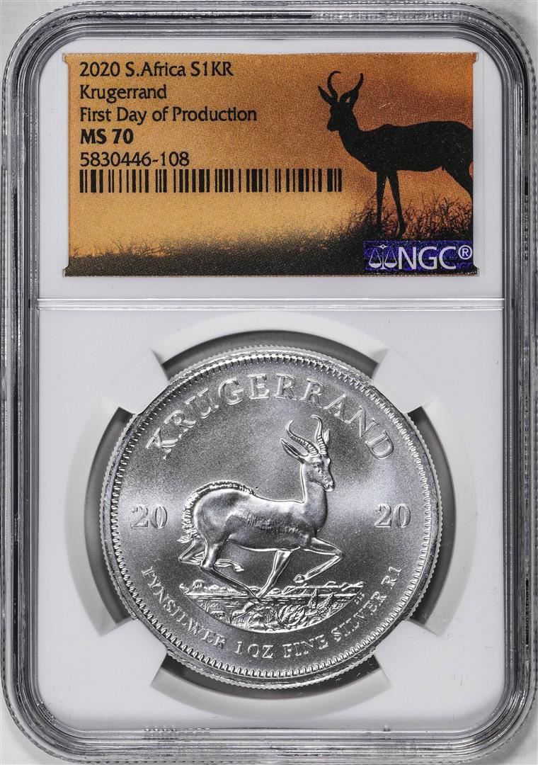 2020 South Africa Krugerrand Silver Coin NGC MS70 First Day of Production