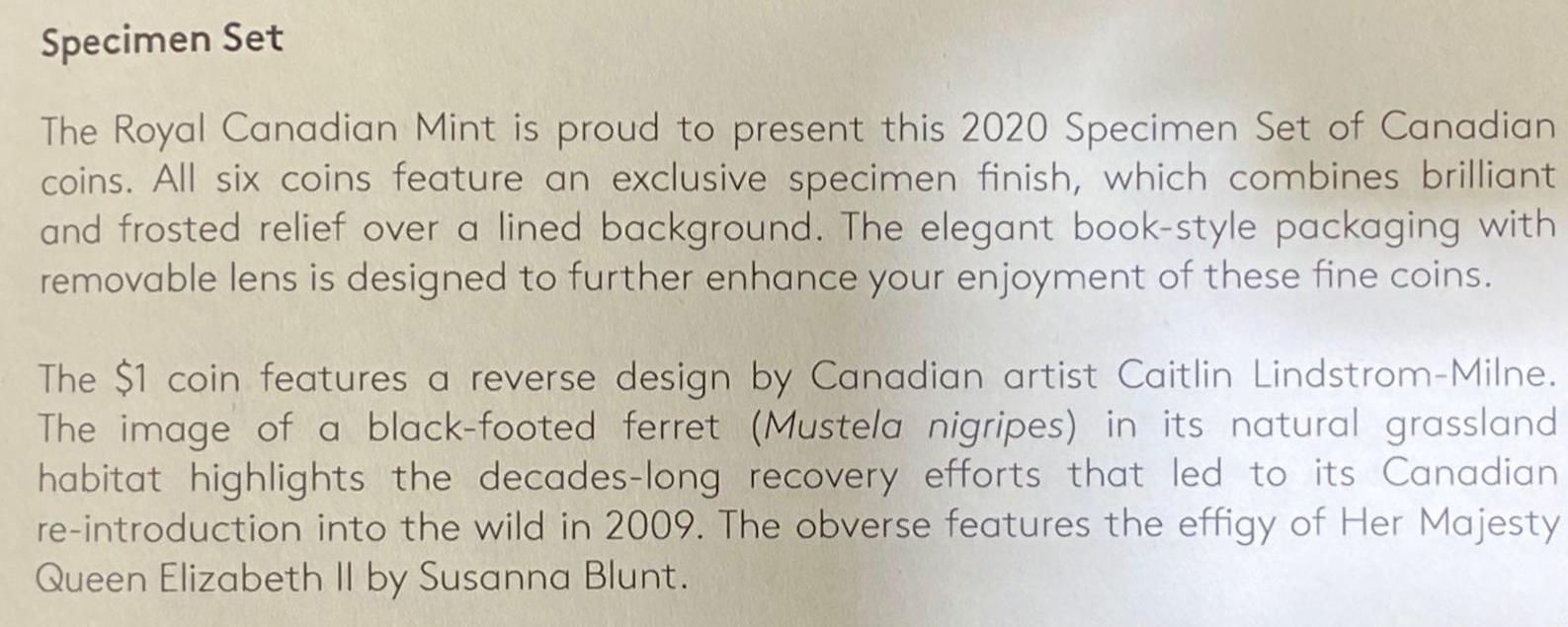 2020 Specimen Set Black-Footed Ferret Coin Set