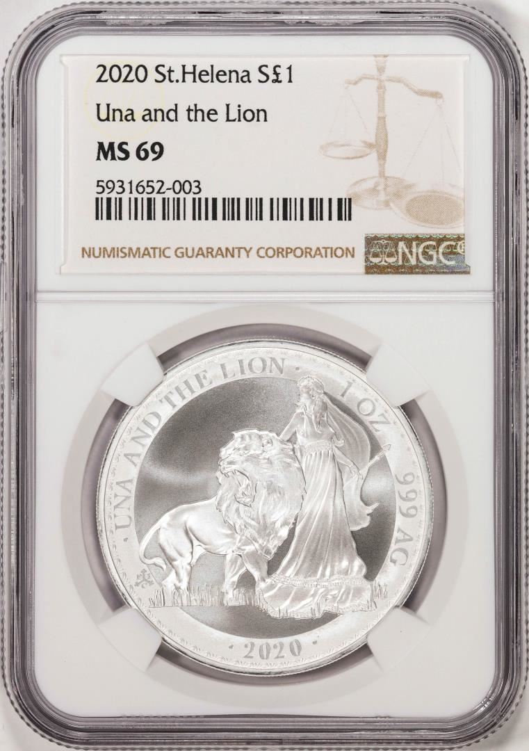 One 2020 St. Helena 1 GB Pound Una And The Lion Silver Coin NGC MS69. NGC Certified.