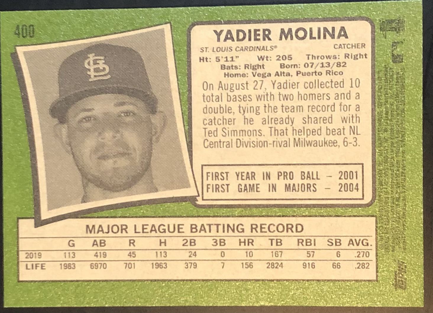 Card #400 MLB, baseball