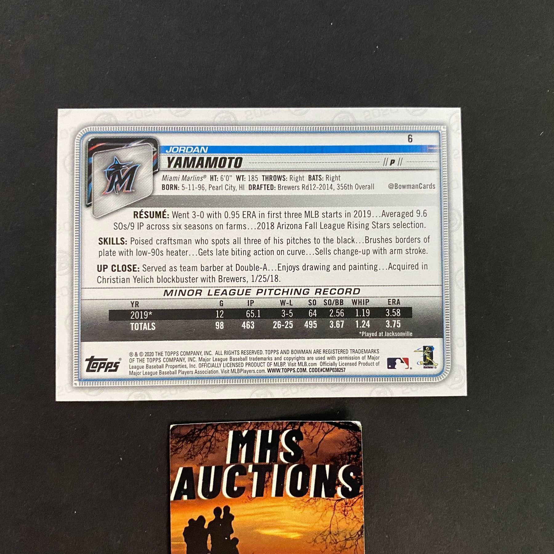 2020 TOPPS JORDAN YAMAMOTO ROOKIE BASEBALL CARD