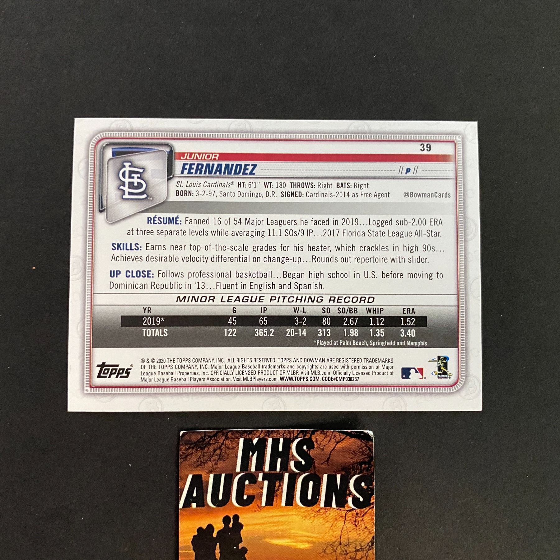 2020 TOPPS JUNIOR FERNANDEZ ROOKIE BASEBALL CARD