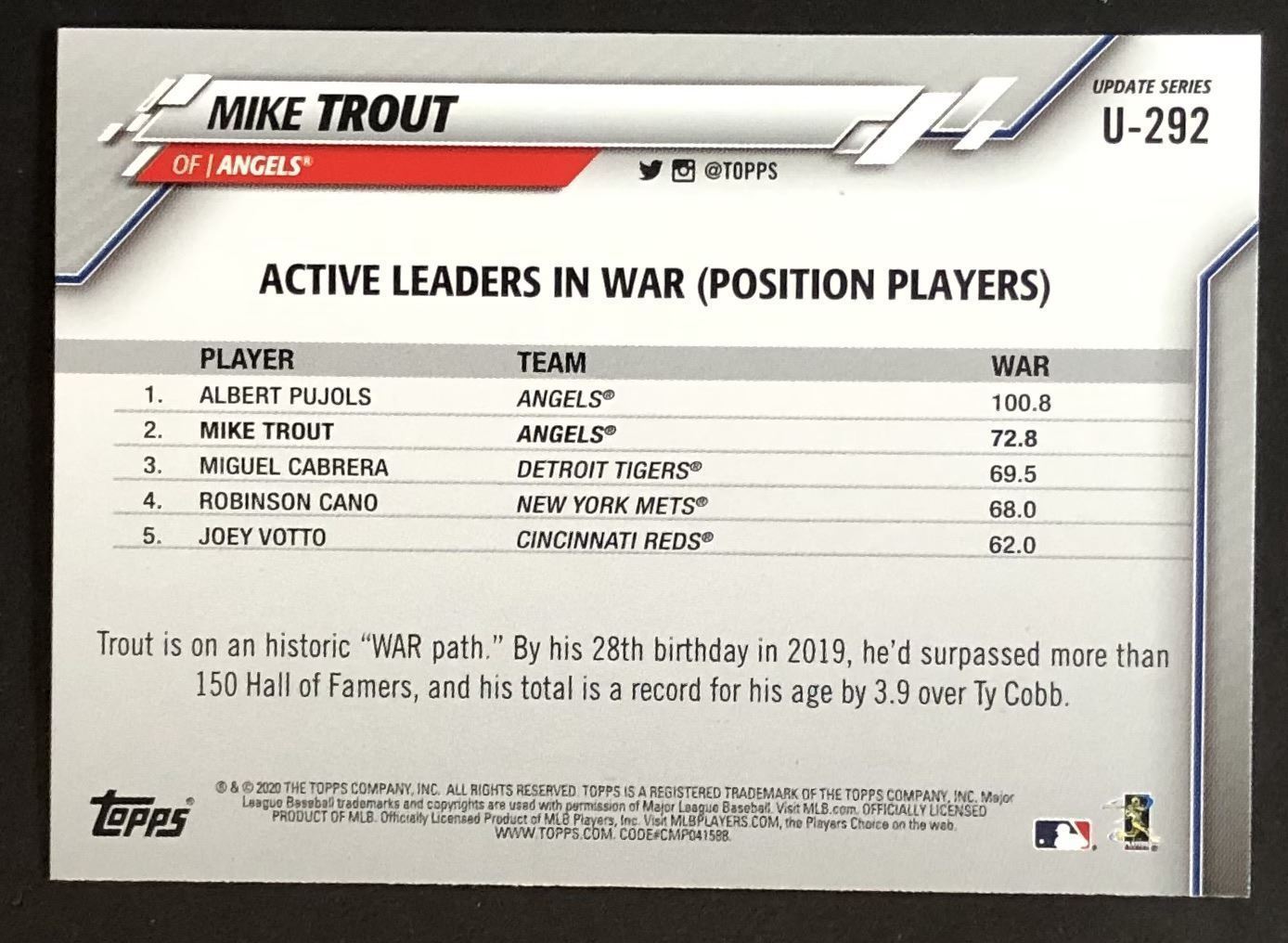 TOPPS ACTIVE LEADERS Card #U-292 baseball, MLB