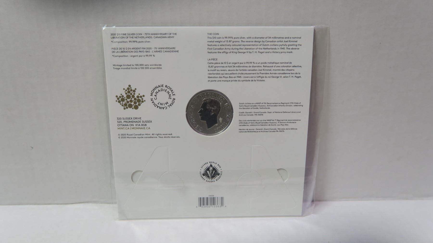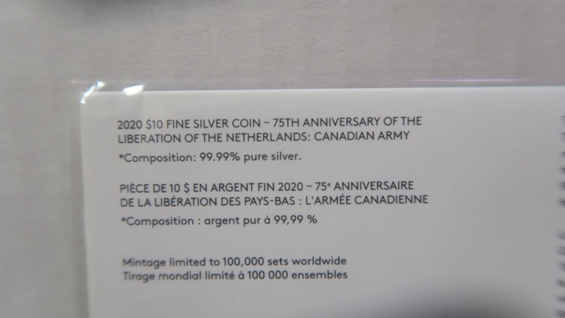 2020 The Liberation of the Netherlands $10. Colourized. 99.99% pure Silver. Specimen. Housed in its original folder.