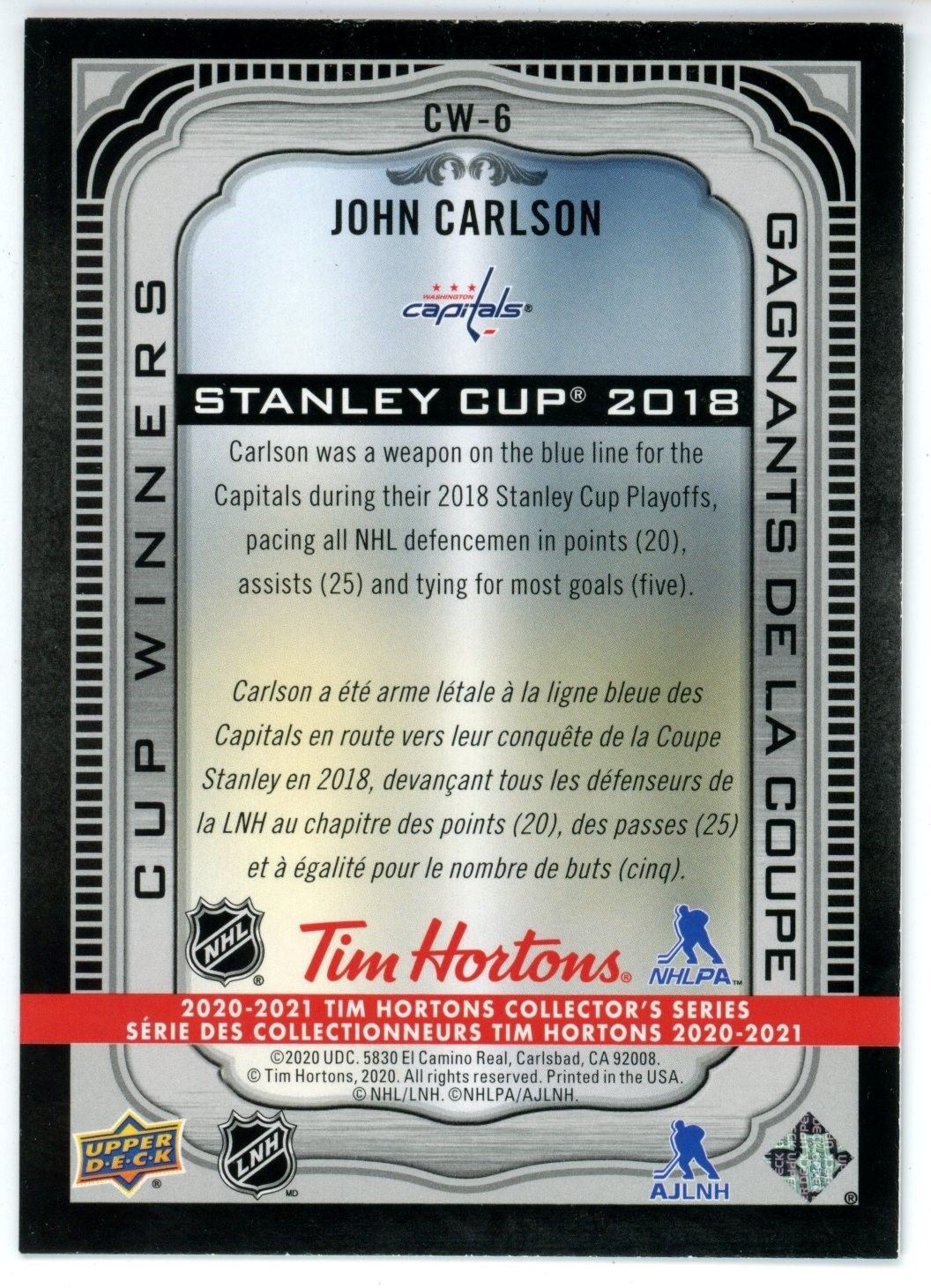 2020 UD Tim Horton's, John Carlson - Cup Winners NHL card