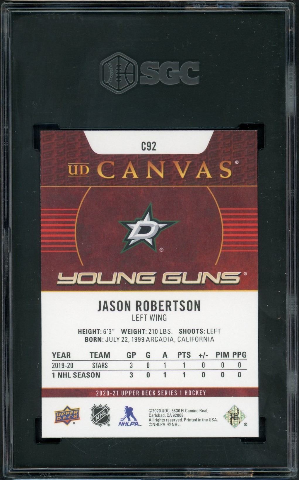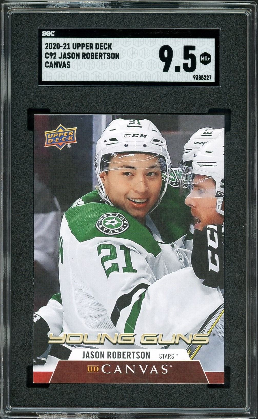 2020 Young guns rookie Canvas card of Dallas Stars top forward Jason Robertson, graded a 9.5 by SGC.