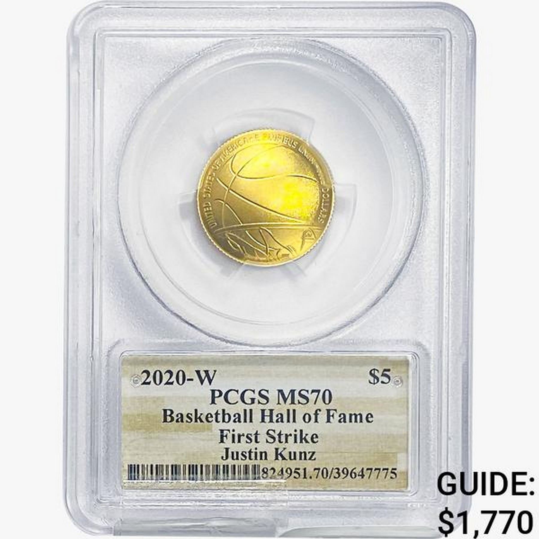 2020-W 1/4oz Gold $5 Base. HoF J.Kunz PCGS MS70
