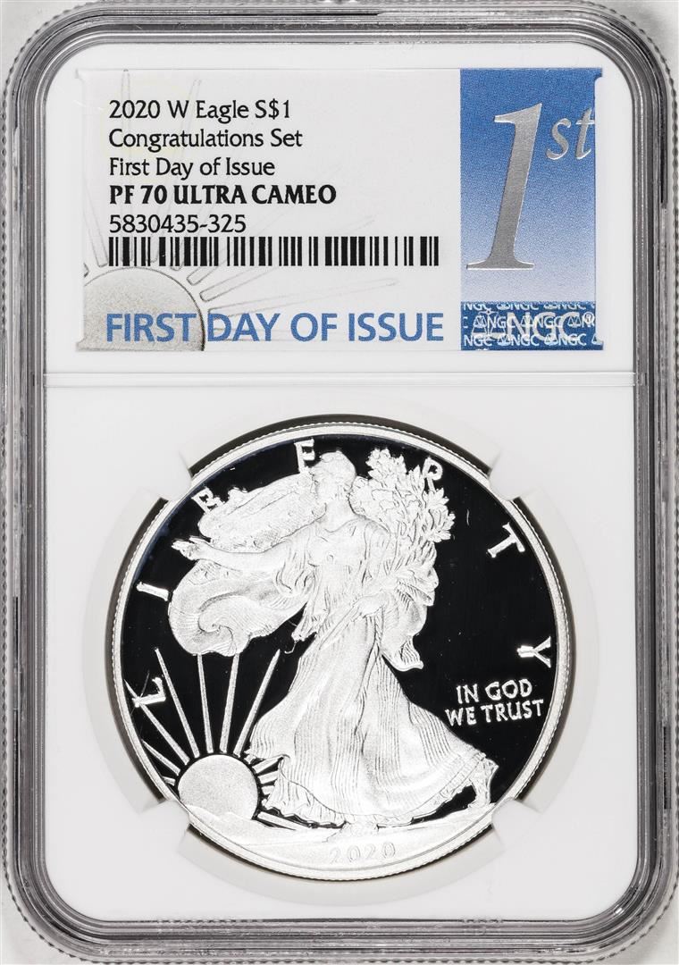 2020-W $1 Proof American Silver Eagle Coin NGC PF70 Ultra Cameo Congratulations FDOI