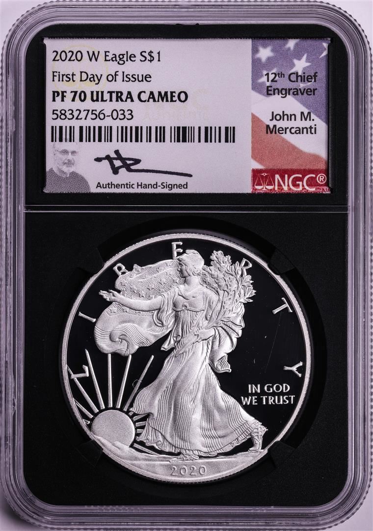 2020-W $1 Proof American Silver Eagle Coin NGC PF70 Ultra Cameo FDOI Mercanti Signed