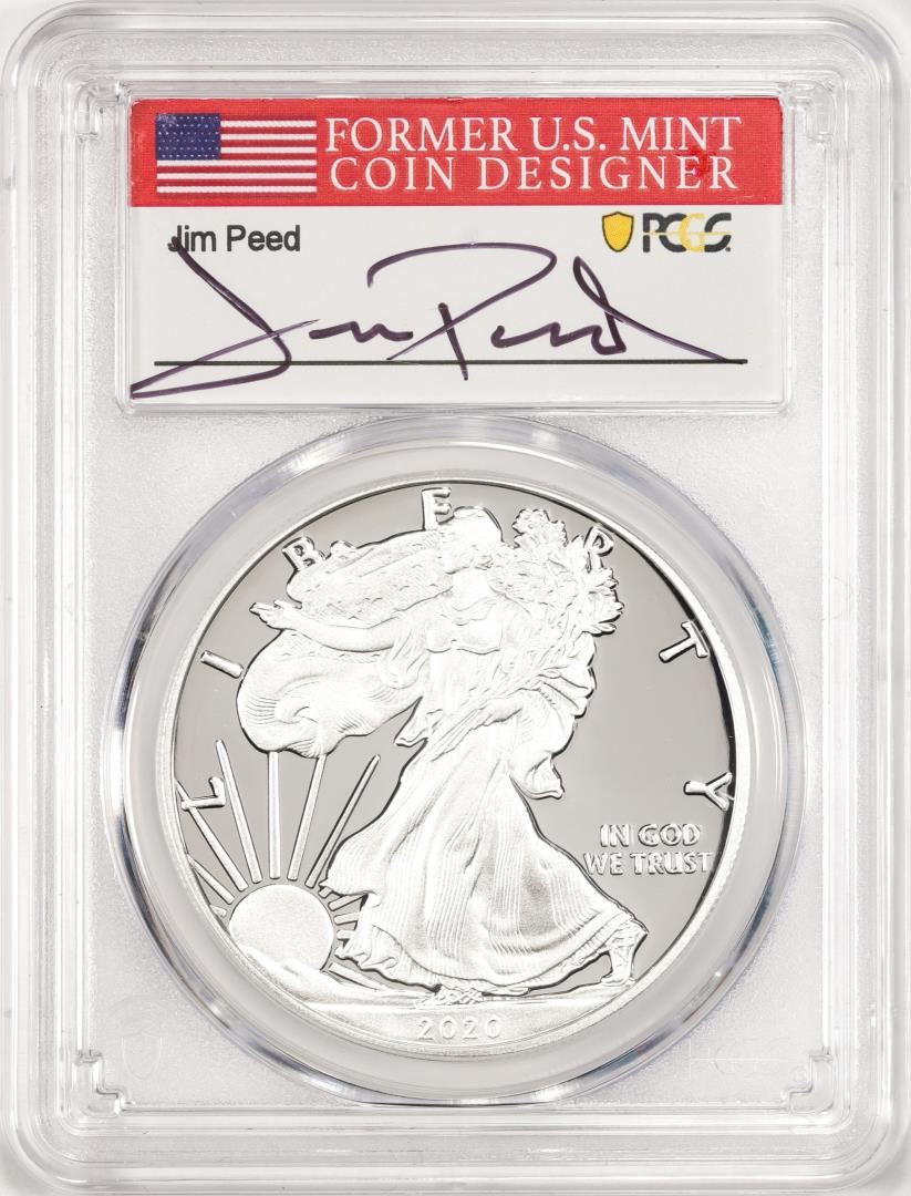 2020-W $1 Proof American Silver Eagle Coin PCGS PR70DCAM FDOI Jim Peed Signed