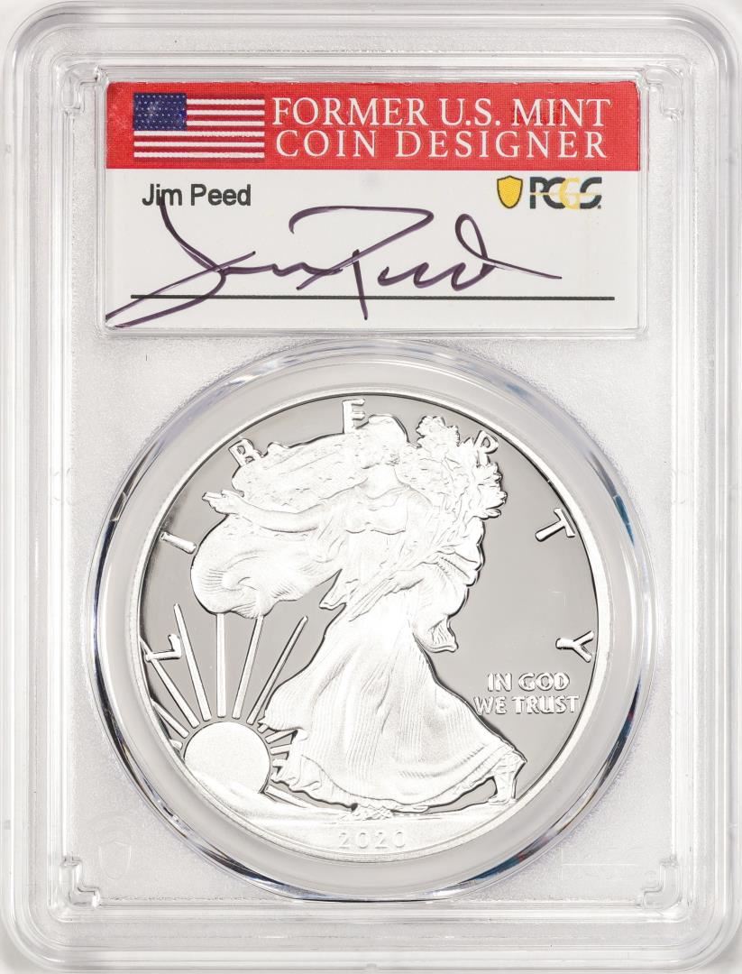 2020-W $1 Proof American Silver Eagle Coin PCGS PR70DCAM FDOI Jim Peed Signed