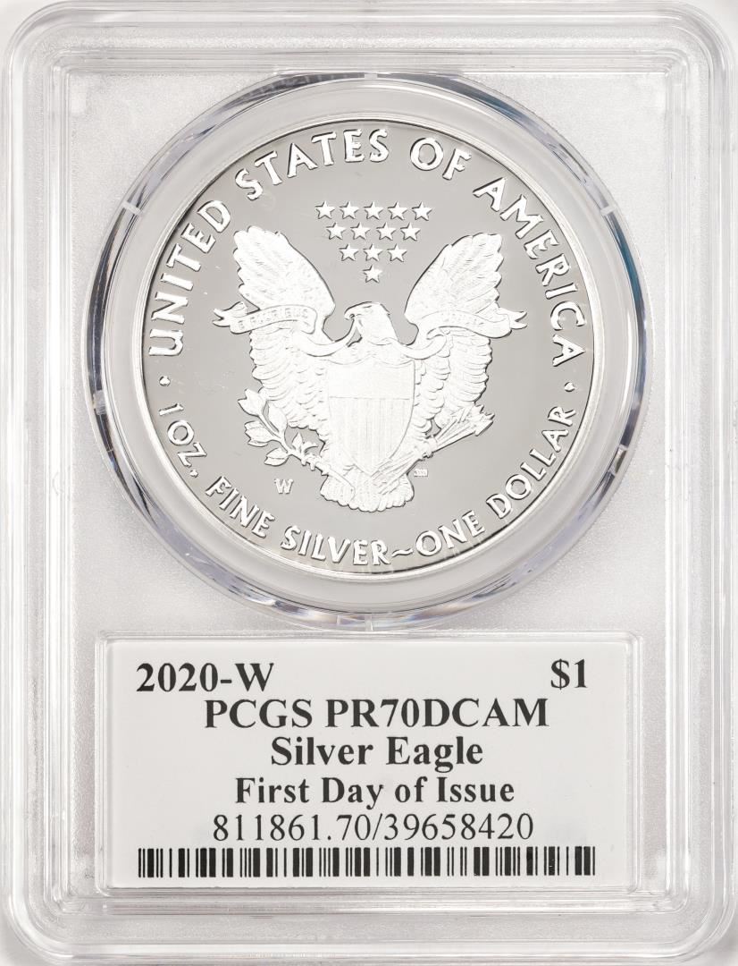 2020-W $1 Proof American Silver Eagle Coin PCGS PR70DCAM FDOI Jim Peed Signed