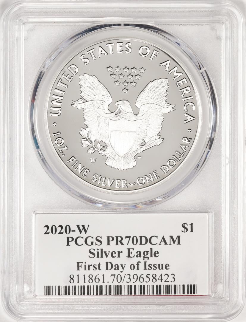 2020-W $1 Proof American Silver Eagle Coin PCGS PR70DCAM FDOI Jim Peed Signed