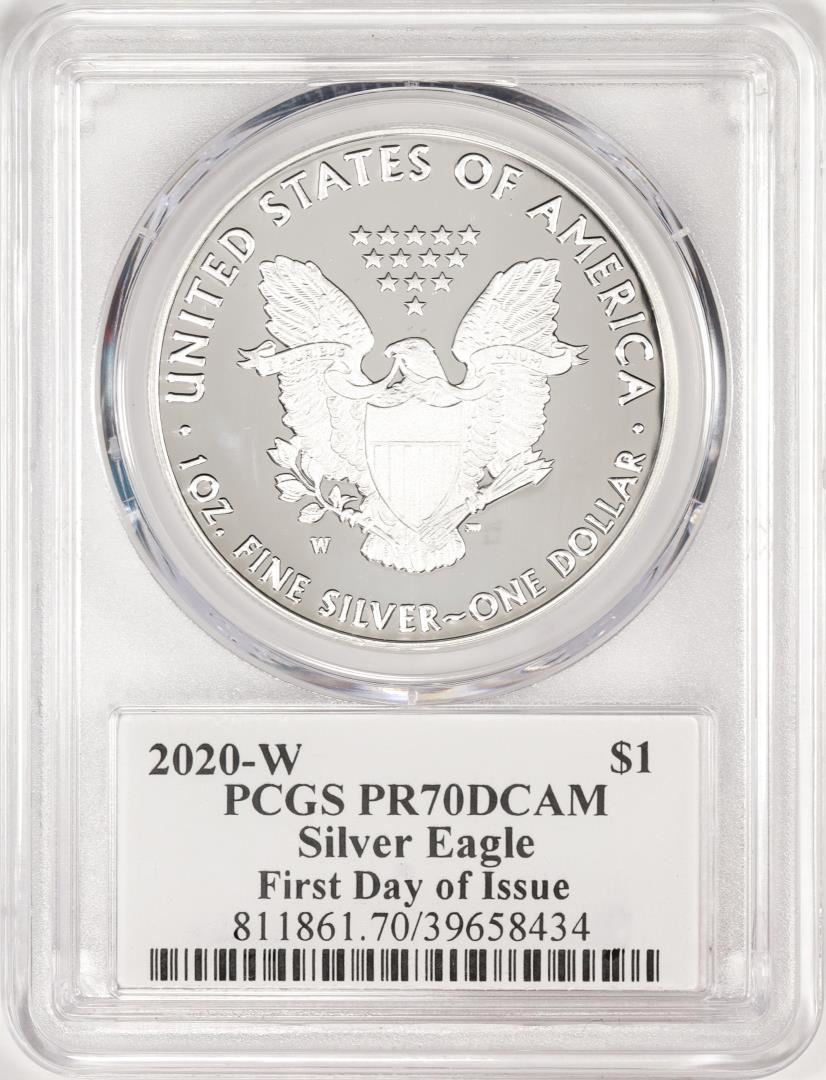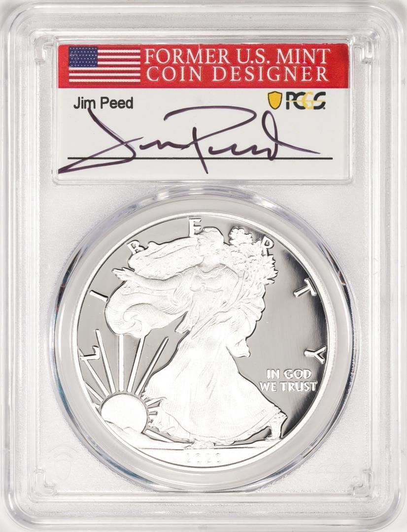 2020-W $1 Proof American Silver Eagle Coin PCGS PR70DCAM FDOI Jim Peed Signed
