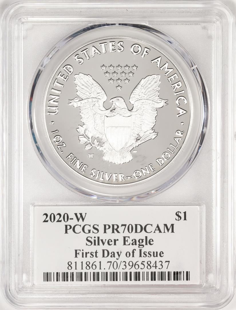 One 2020-W $1 Proof American Silver Eagle Coin PCGS PR70DCAM FDOI Jim Peed Signed. PCGS Graded.