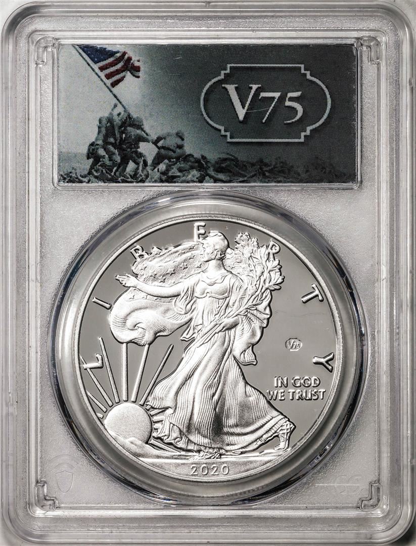 2020-W V75 $1 WWII Privy Mark Proof American Silver Eagle Coin PCGS PR70DCAM FS