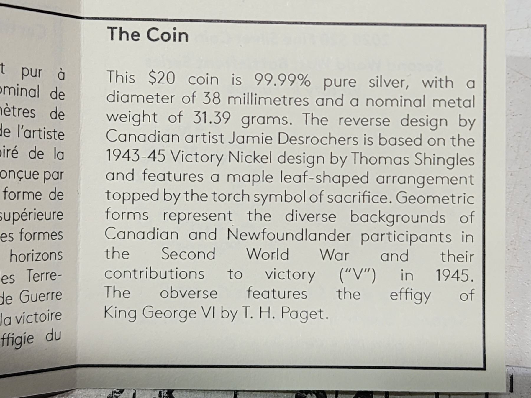 2020 "WWII Battlefront series: Victory in Europe" Canadian 20 dollar, fine silver coin