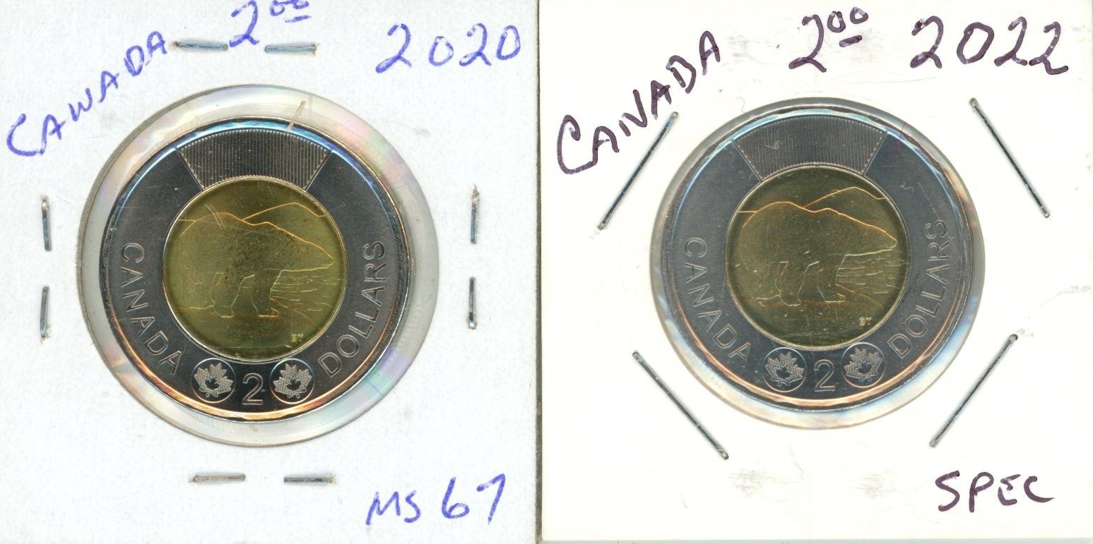 2020 and 2022 Canadian Toonie.