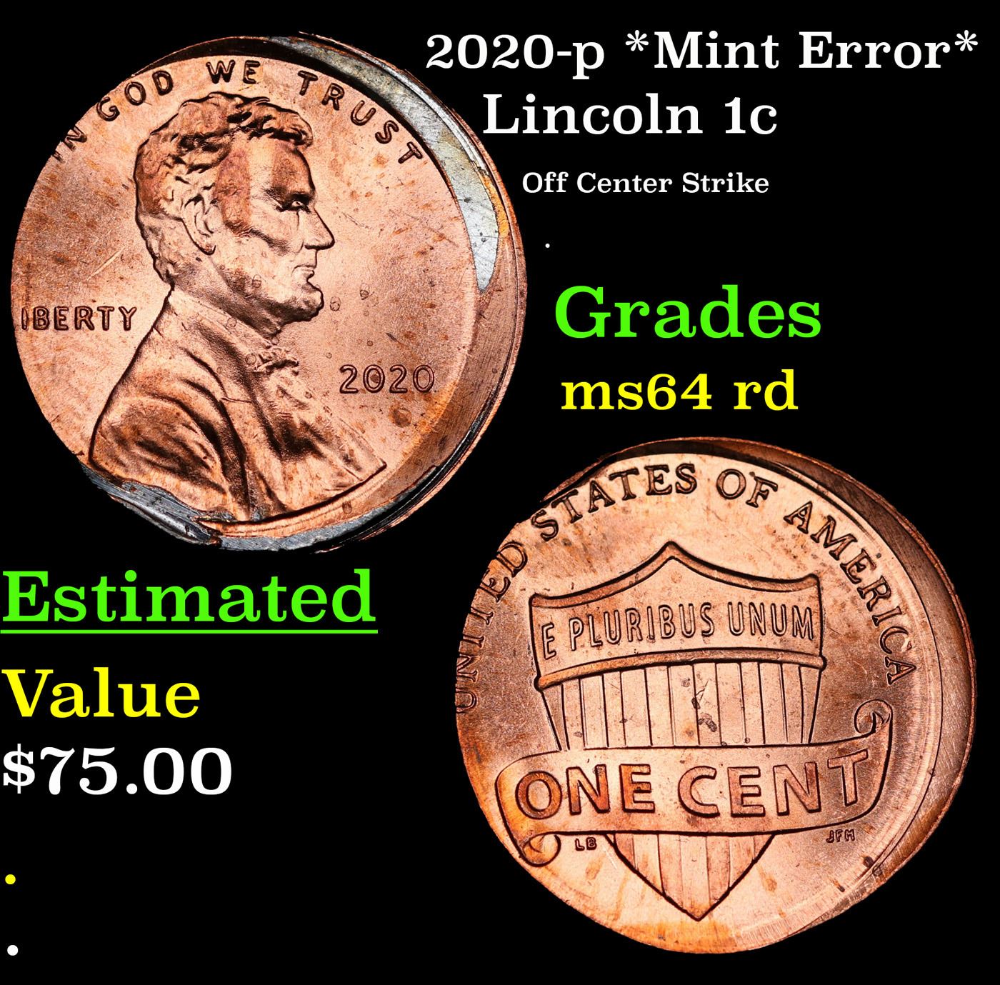 2020-p *Mint Error* Lincoln Cent 1c Grades Choice Unc RD.