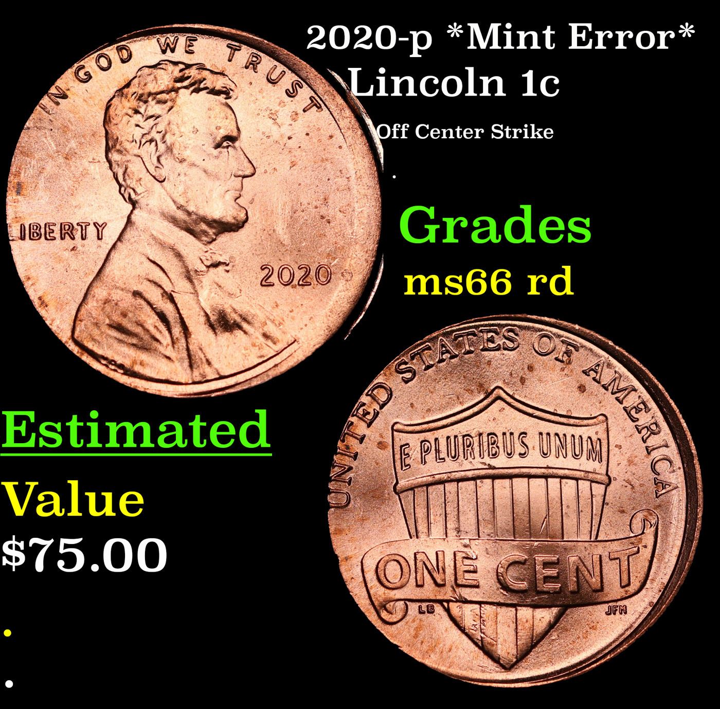 2020-p *Mint Error* Lincoln Cent 1c Grades GEM+ Unc RD.