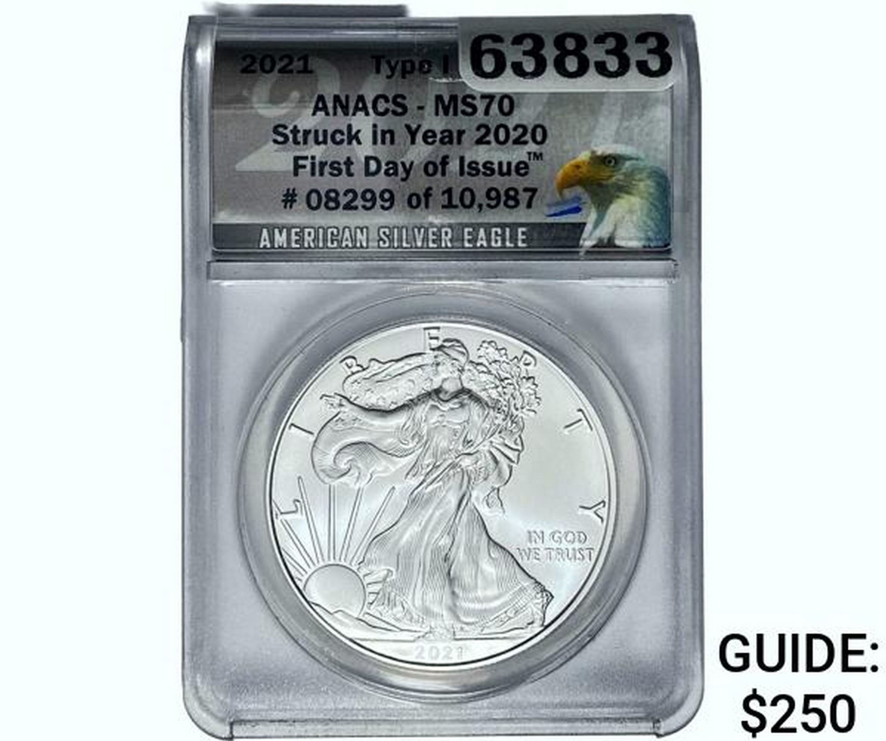 2021 $1 Silver Eagle ANACS MS70 T1