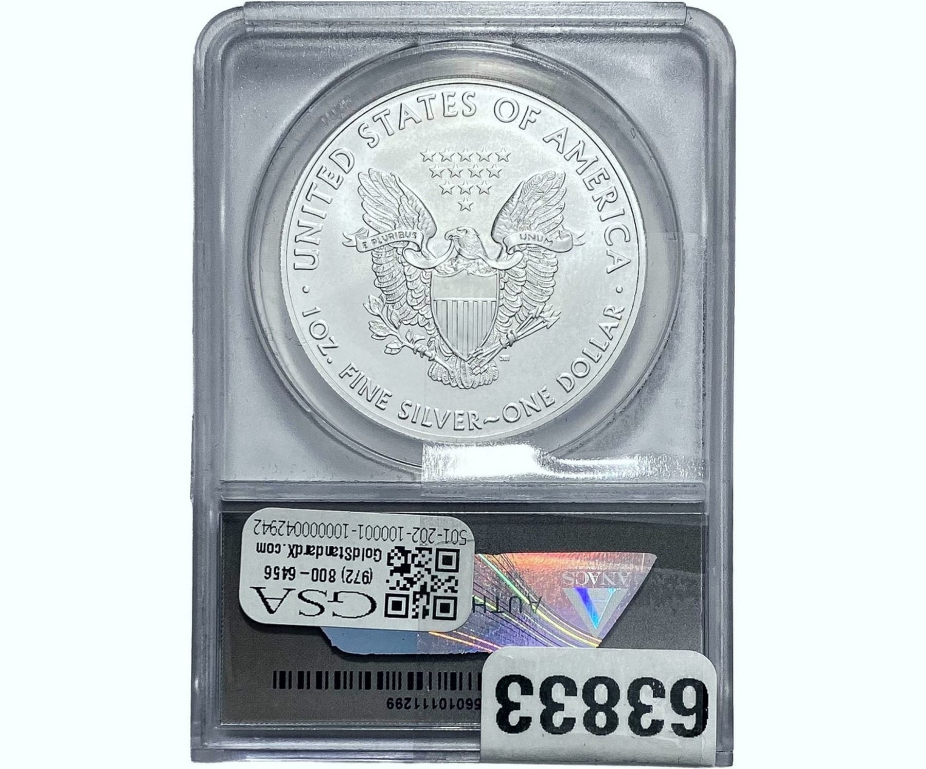 e. Coins sold referencing a third-party grading service are sold “AS IS” without any express or implied warranty, except for a guarantee by GSA that they are genuine. Removal or alteration of the holder, voids all of Bidder’s claims concerning that Product. Certain warranties may be available from the grading services and Bidders are referred to them for further details: Numismatic Guaranty Corporation (NGC), PO Box 4776, Sarasota, FL 34230, www.ngccoin.com/services/writtenguarantee.asp; Professional Coin Grading Services (PCGS), PO Box 9458, Newport Beach, CA 92658, www.pcgs.com/guarantee.html; ANACS, 6555 S. Kenton St., Ste. 303, Englewood, CO 80111; and Independent Coin Grading Co. (ICG), 7901 East Bellview, Ave., Suite 50, Englewood, CO 80111.
