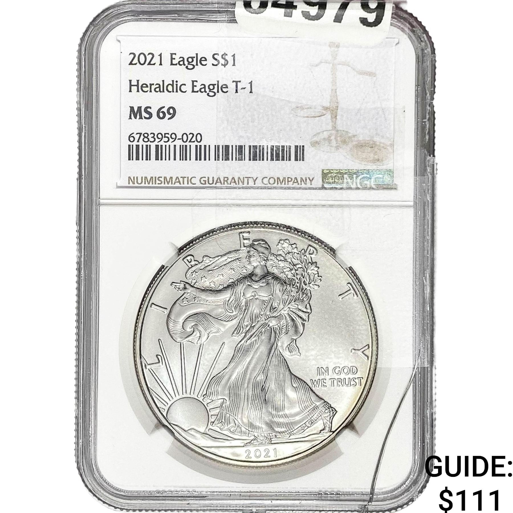 2021 $1 Silver Eagle NGC MS69 Heraldic Eagle T-1