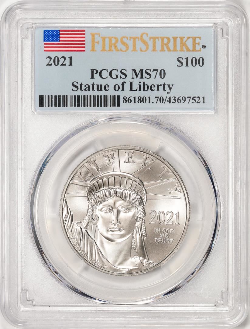 One 2021 $100 Platinum American Eagle Coin PCGS MS70 First Strike. PCGS Graded.