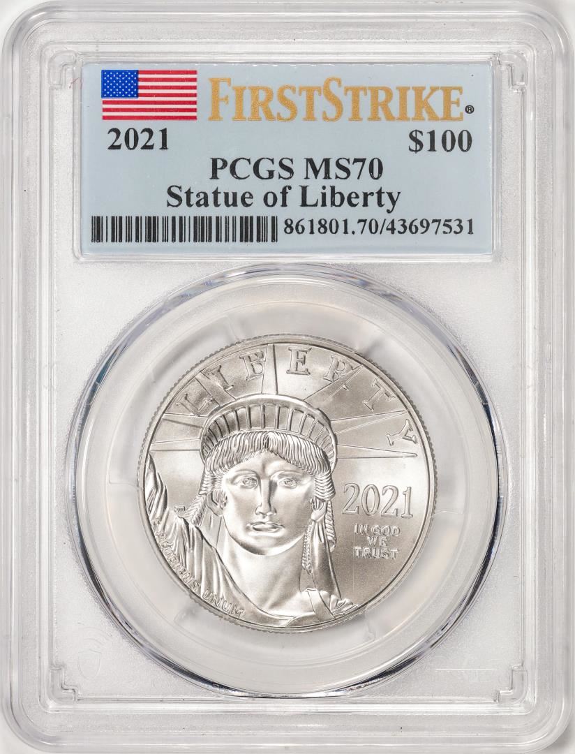 One 2021 $100 Platinum American Eagle Coin PCGS MS70 First Strike. PCGS Graded.