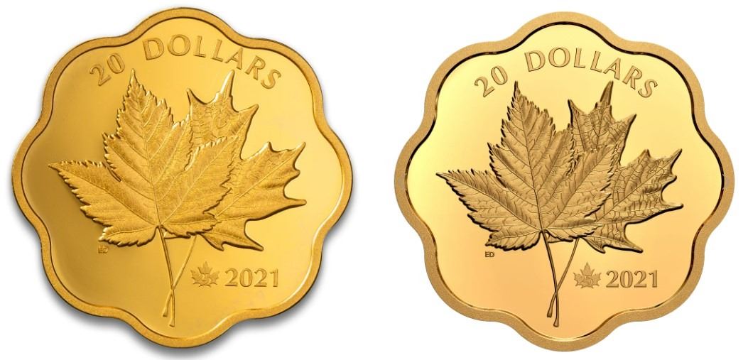 2021 $20 Iconic Maple Leaves & 2021 $20 Iconic Maple Leaves Gold Plated - Lot of 2 Pure Silver Coins. Tax Exempt.