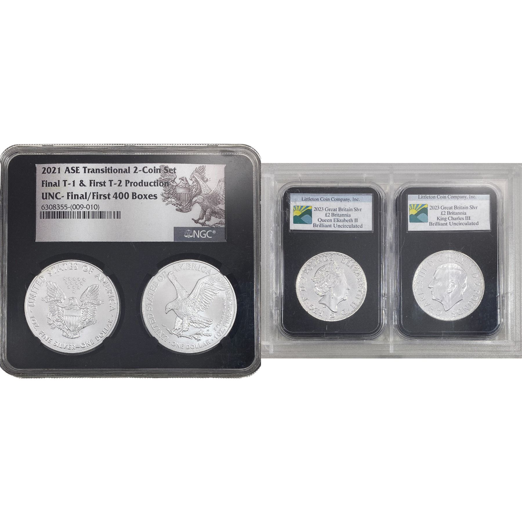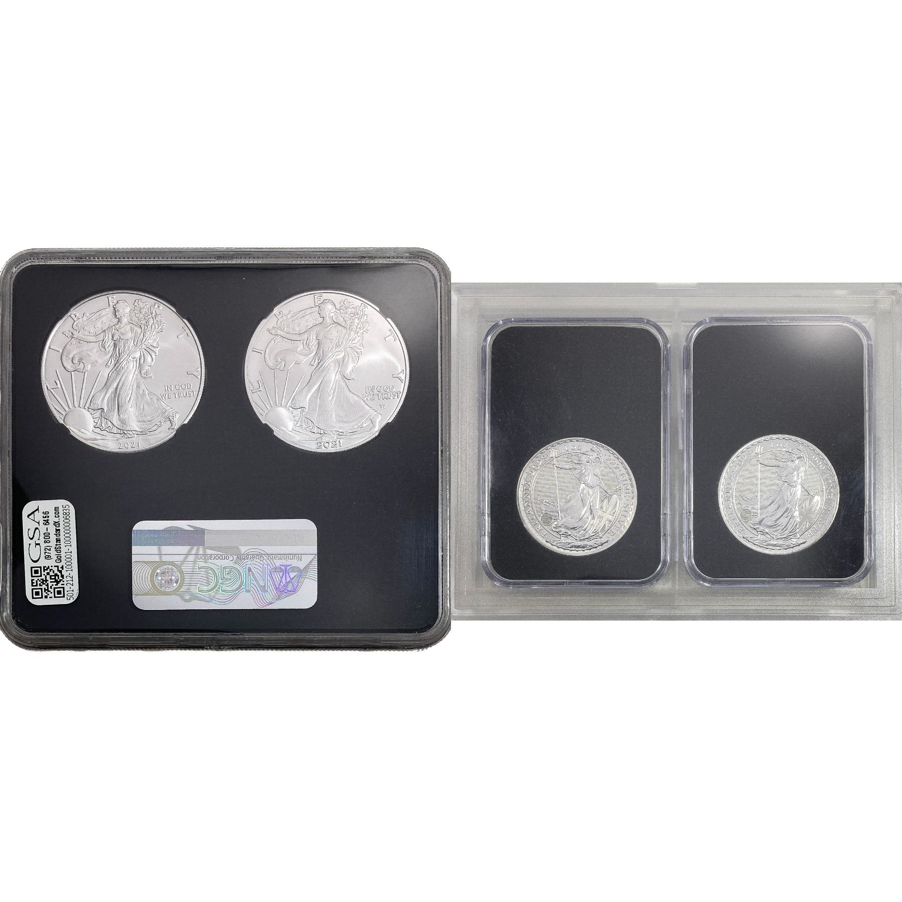 2021-2023 US Silver Eagle and British Silver Britania Coin Lot [4 Coins]