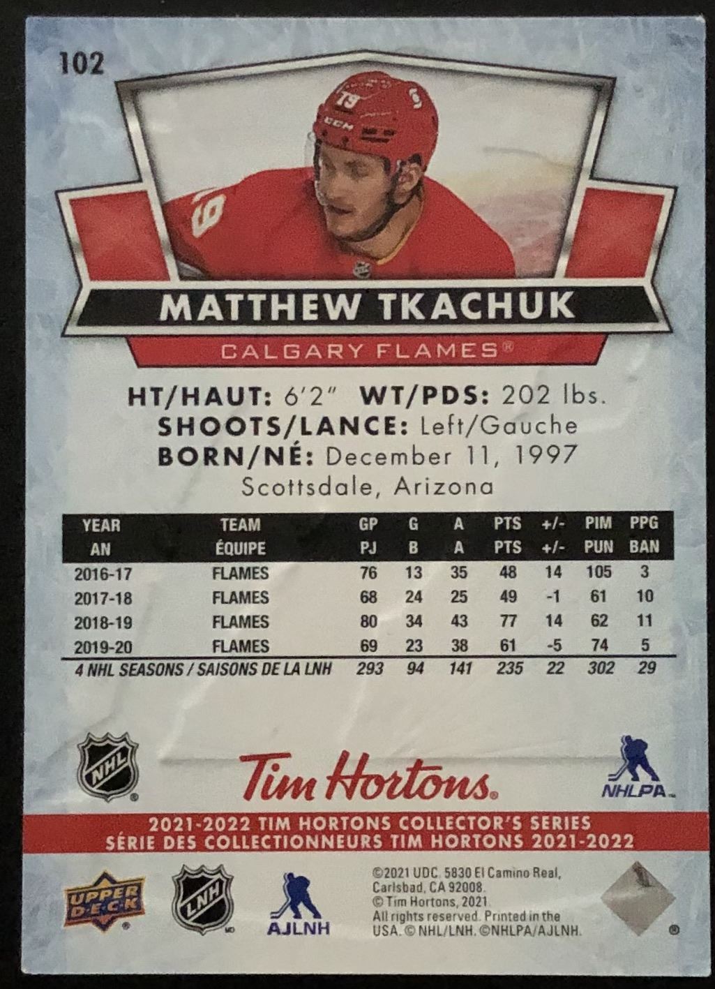 Tim Hortons card #102 hockey, NHL, UD, regional