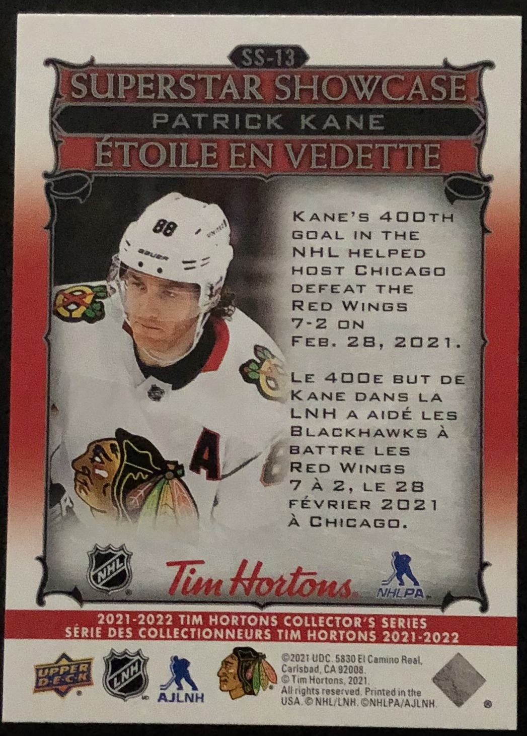 Tim Hortons card #SS-13 hockey, NHL, UD, regional