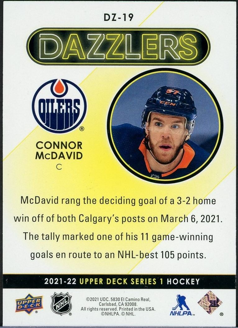 2021-22 UD Blue Dazzlers insert of Oilers star Connor McDavid