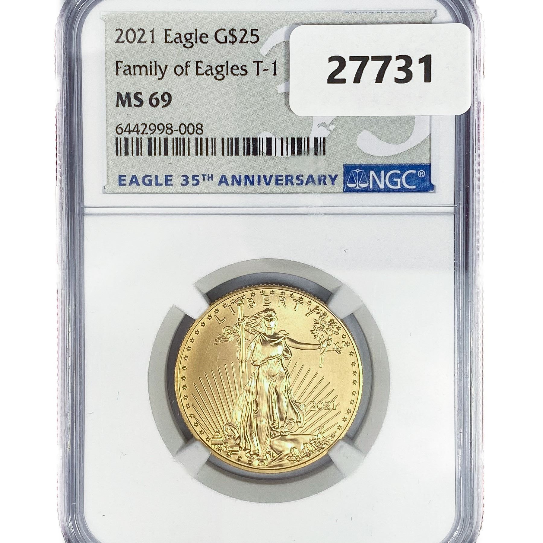2021 $25 1/2oz American Gold Eagle NGC MS69 T-1