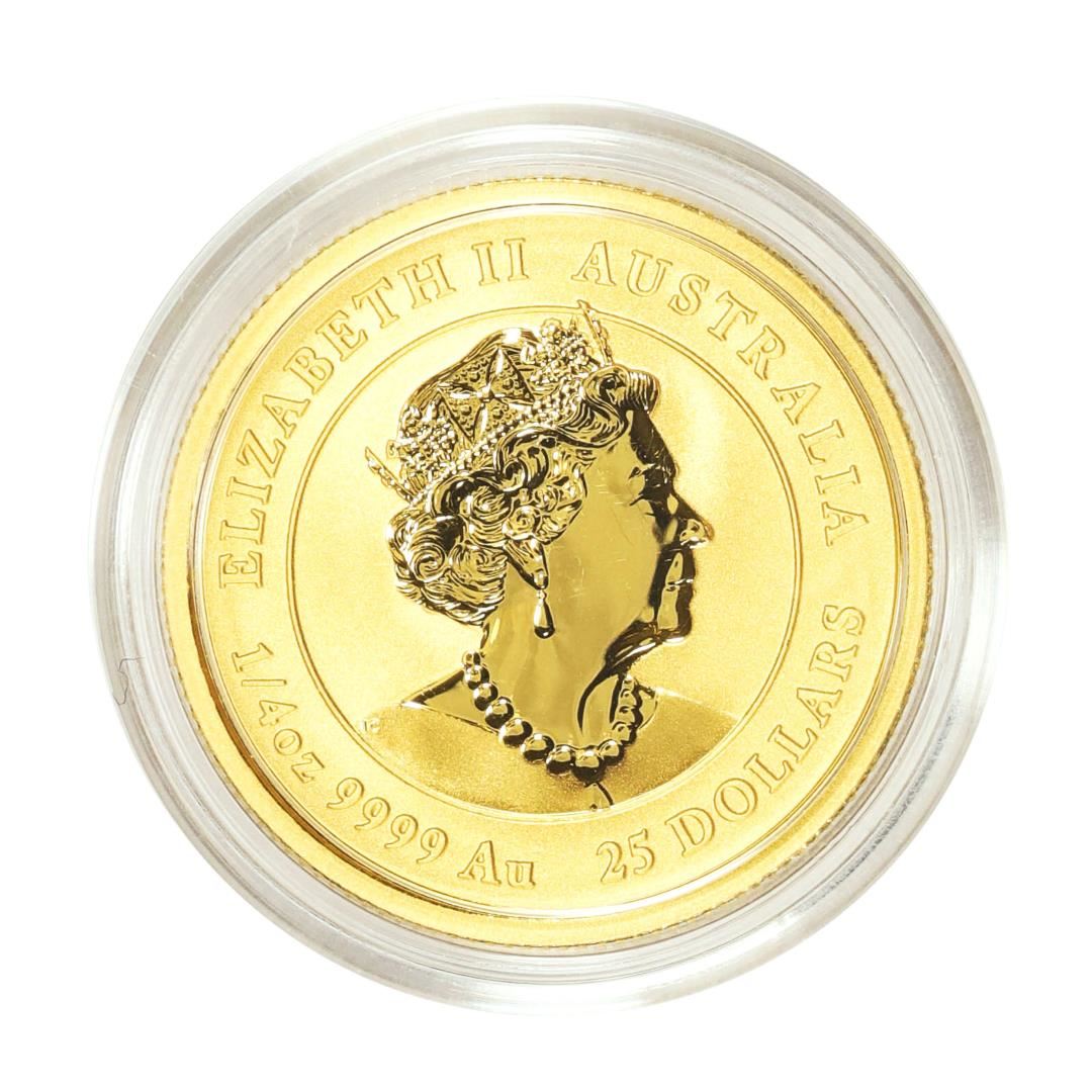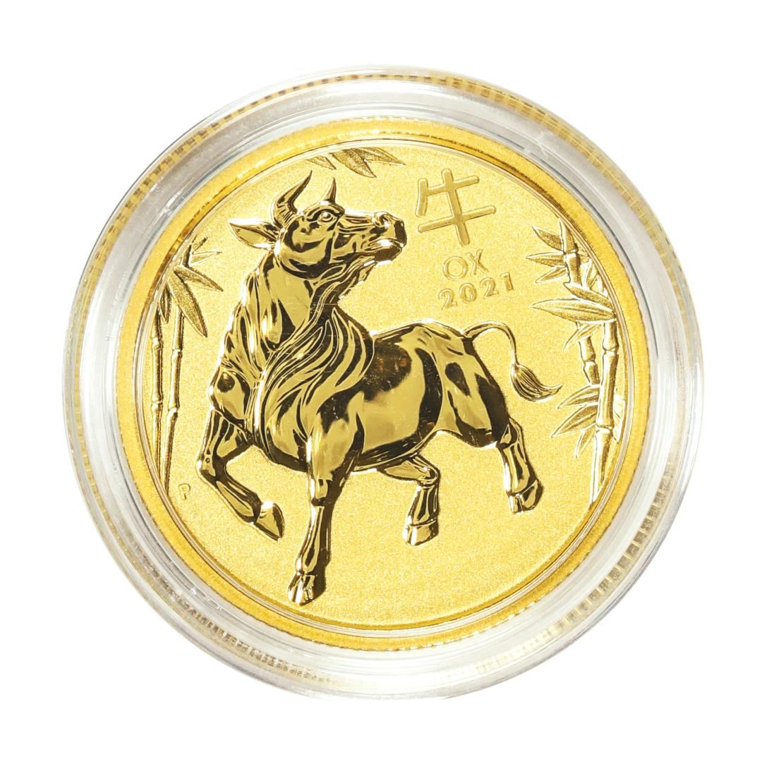 One 2021 $25 Australia Lunar Year of the Ox 1/4 oz. Gold Coin.