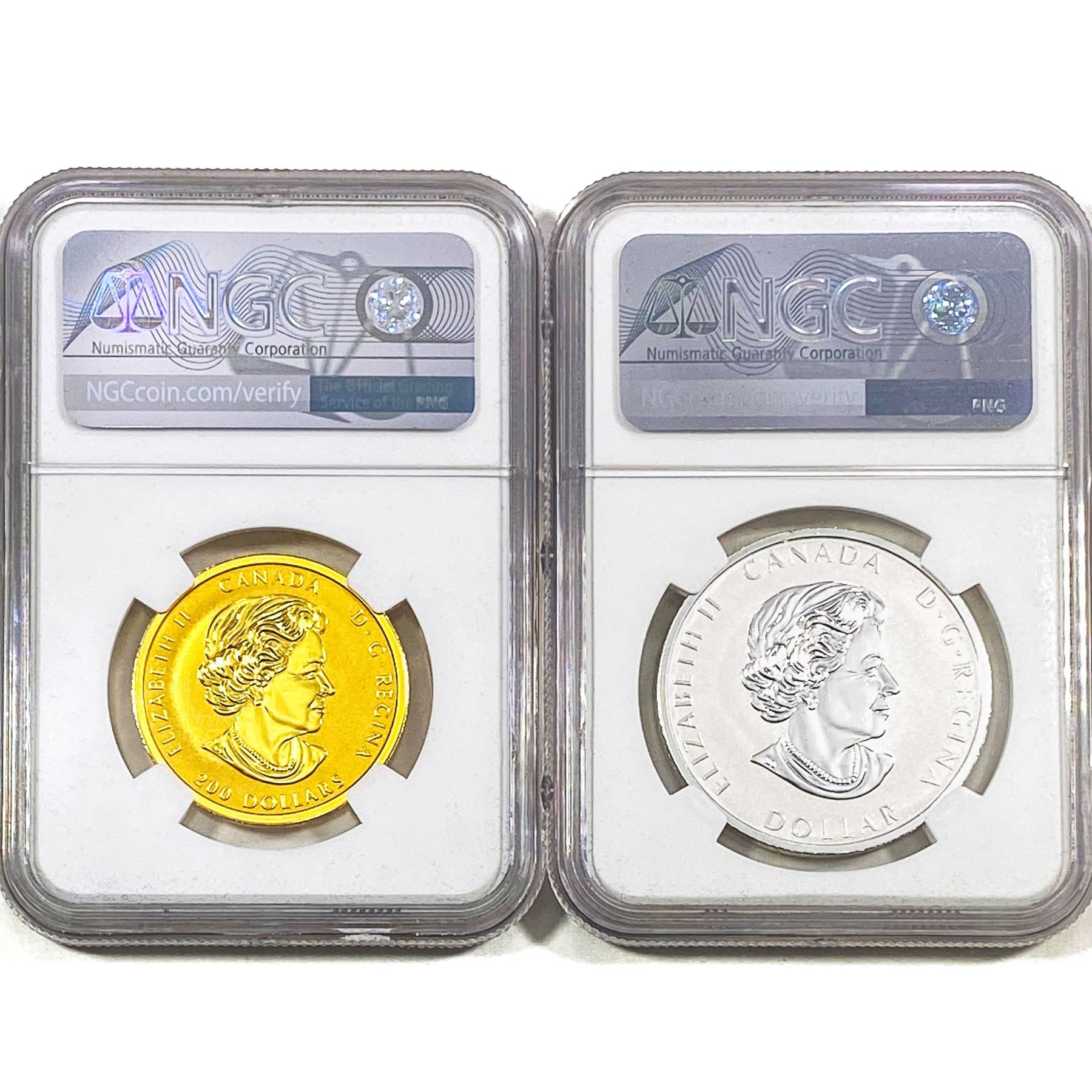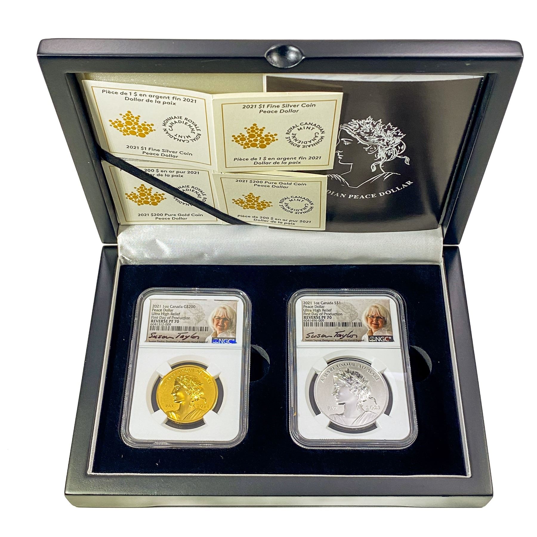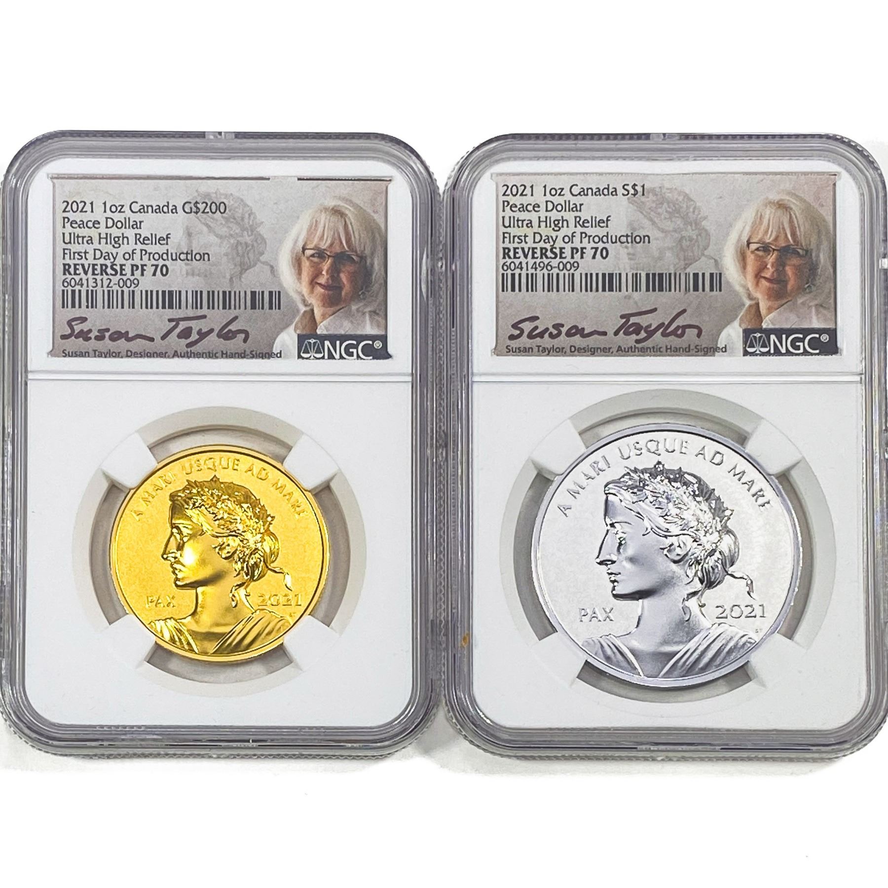 2021 2PC Can 1oz Gld/slv UHR Peace NGC PF70 FDPBC