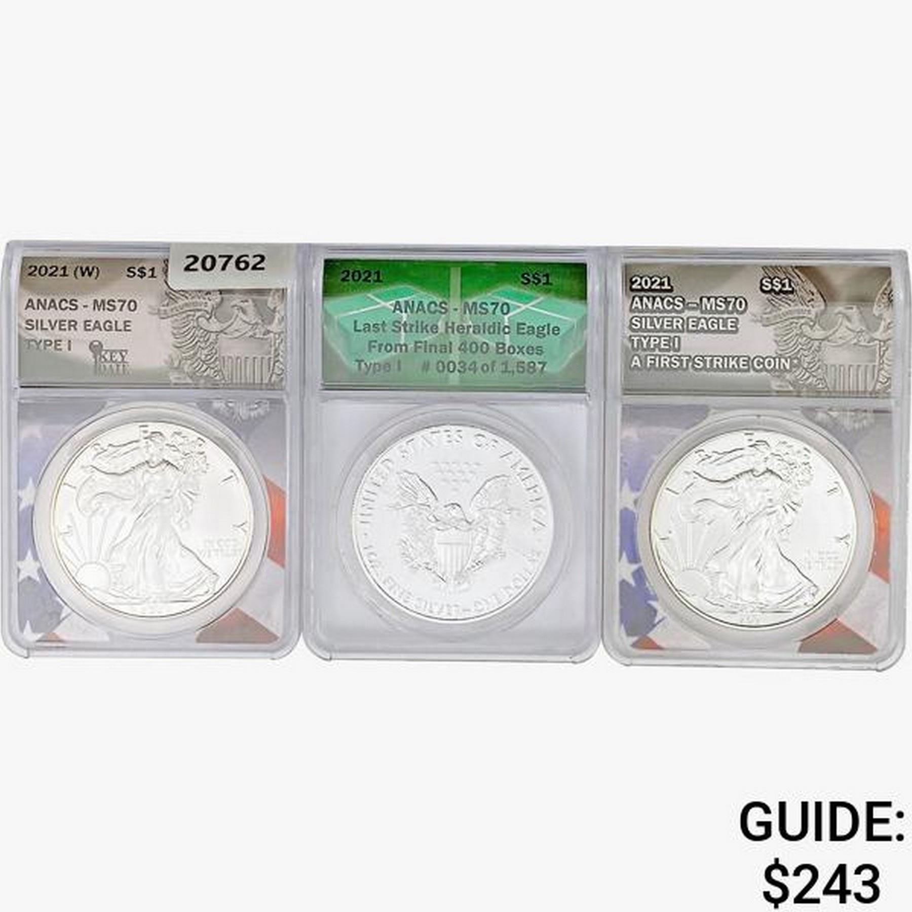 2021 [3] Silver Eagle ANACS MS70 Type 1