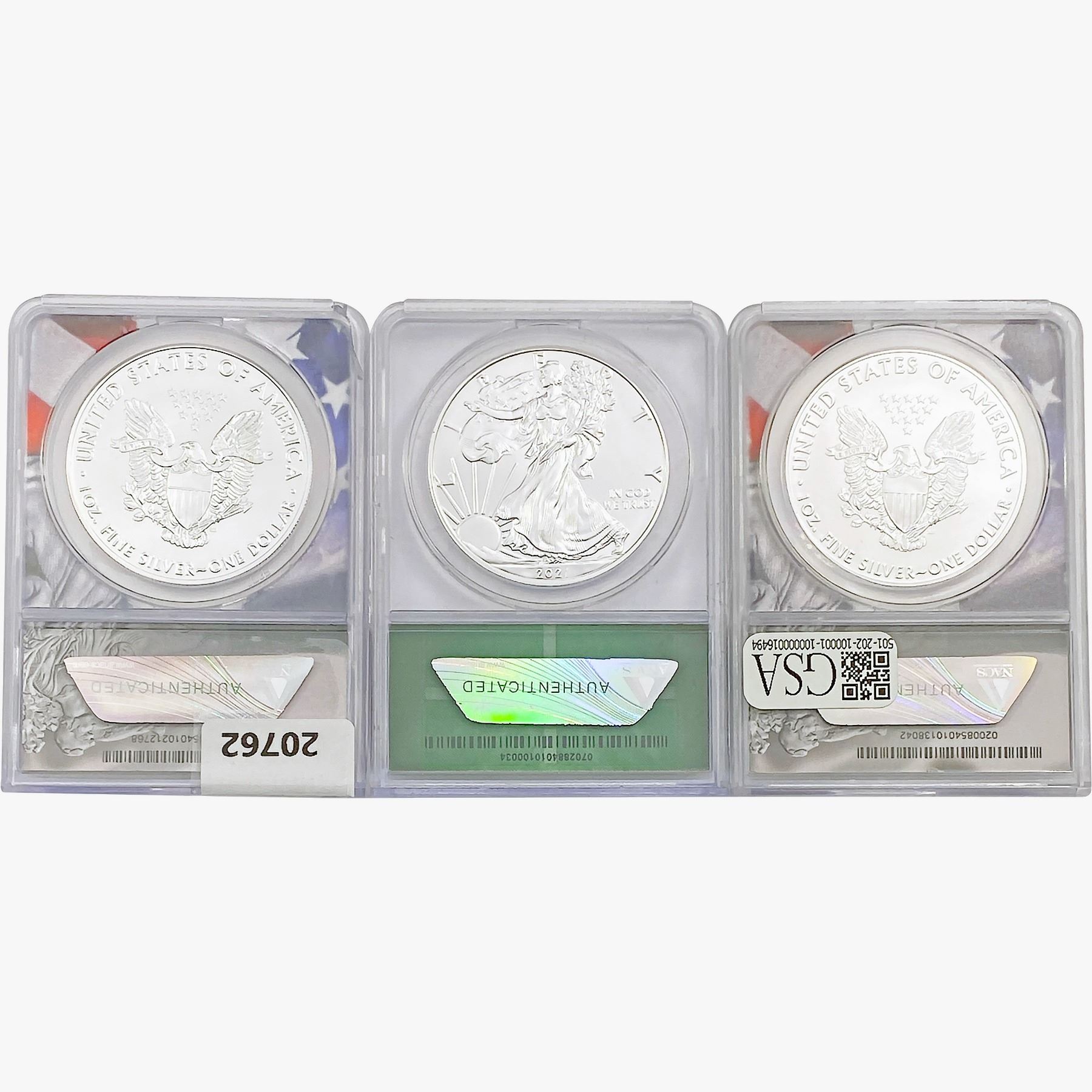 e. Coins sold referencing a third-party grading service are sold “AS IS” without any express or implied warranty, except for a guarantee by GSA that they are genuine. Removal or alteration of the holder, voids all of Bidder’s claims concerning that Product. Certain warranties may be available from the grading services and Bidders are referred to them for further details: Numismatic Guaranty Corporation (NGC), PO Box 4776, Sarasota, FL 34230, www.ngccoin.com/services/writtenguarantee.asp; Professional Coin Grading Services (PCGS), PO Box 9458, Newport Beach, CA 92658, www.pcgs.com/guarantee.html; ANACS, 6555 S. Kenton St., Ste. 303, Englewood, CO 80111; and Independent Coin Grading Co. (ICG), 7901 East Bellview, Ave., Suite 50, Englewood, CO 80111.
