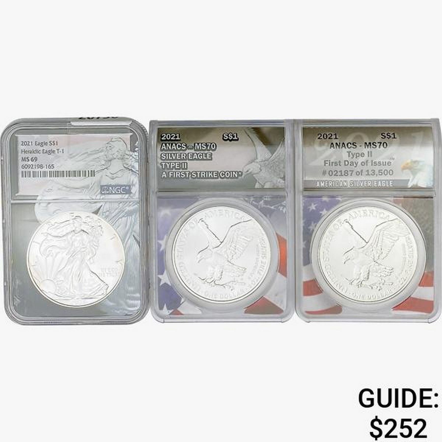 2021 [3] Silver Eagle ANACS/NGC MS69/70 T1&T2