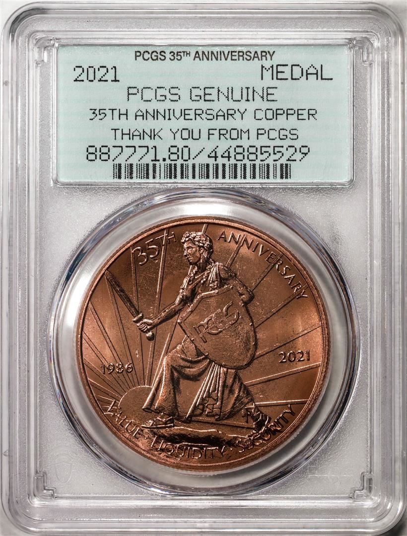 One 2021 35th Anniversary Copper Medal Coin PCGS Genuine. PCGS Graded.