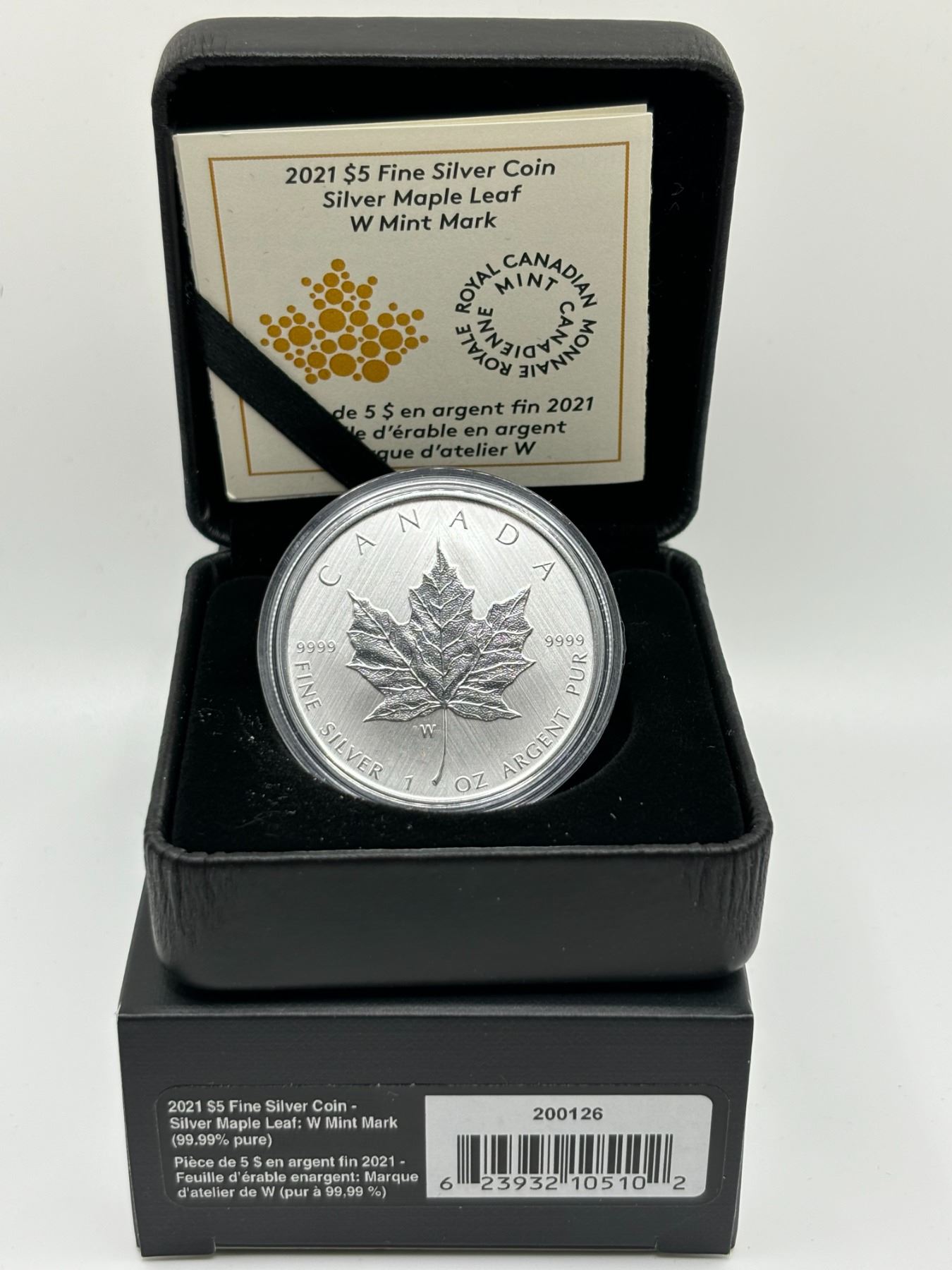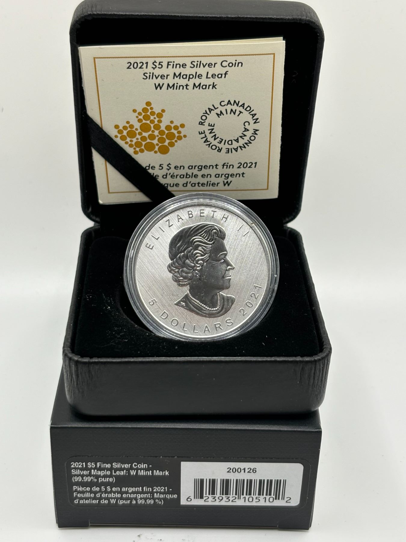 2021 $5 Fine Silver Coin Silver Maple Leaf: W Mint mark (tax exempt)
