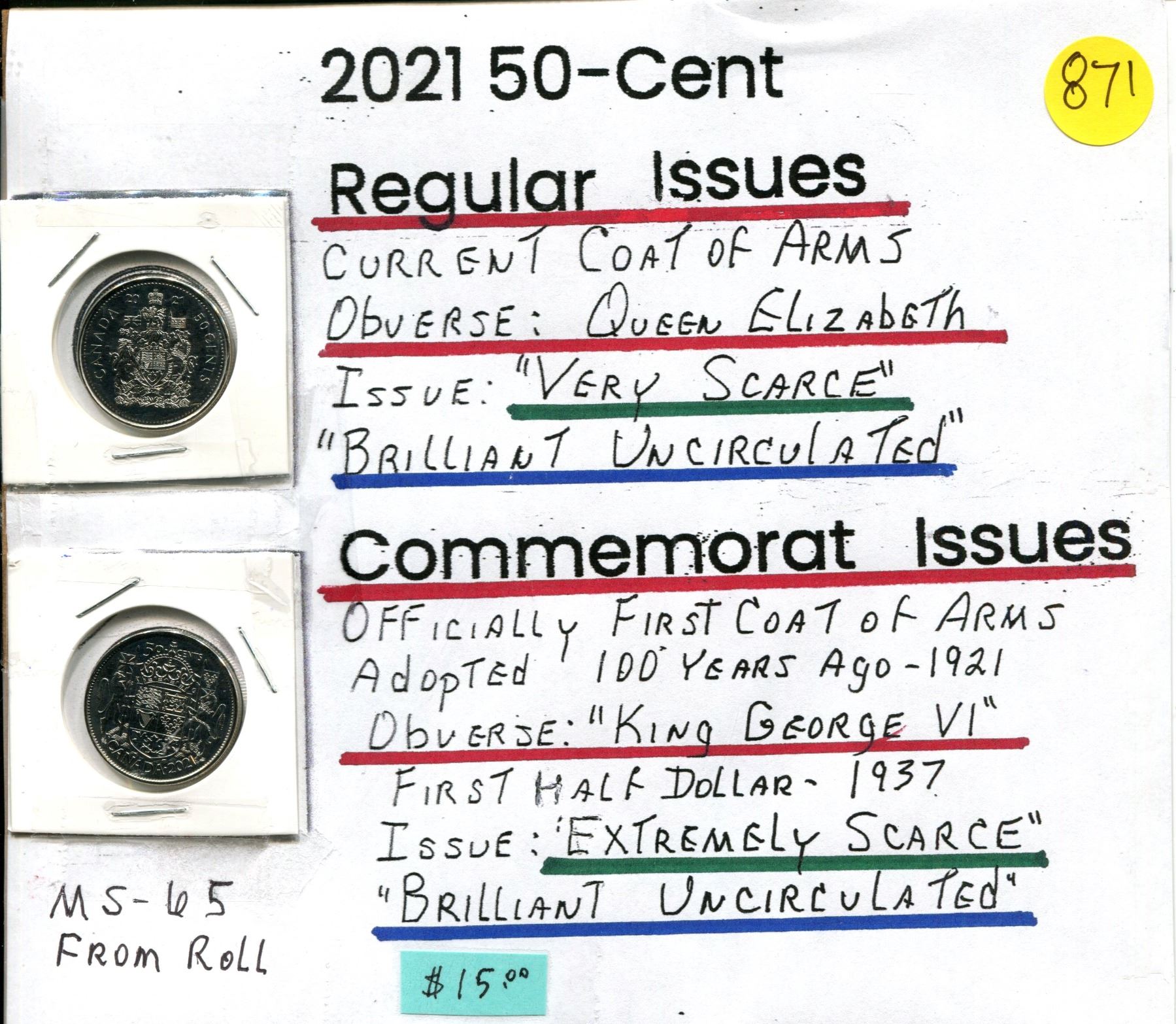 2021 50¢ (2) - Current Coat of Arms & Commemorative First Coat of Arms