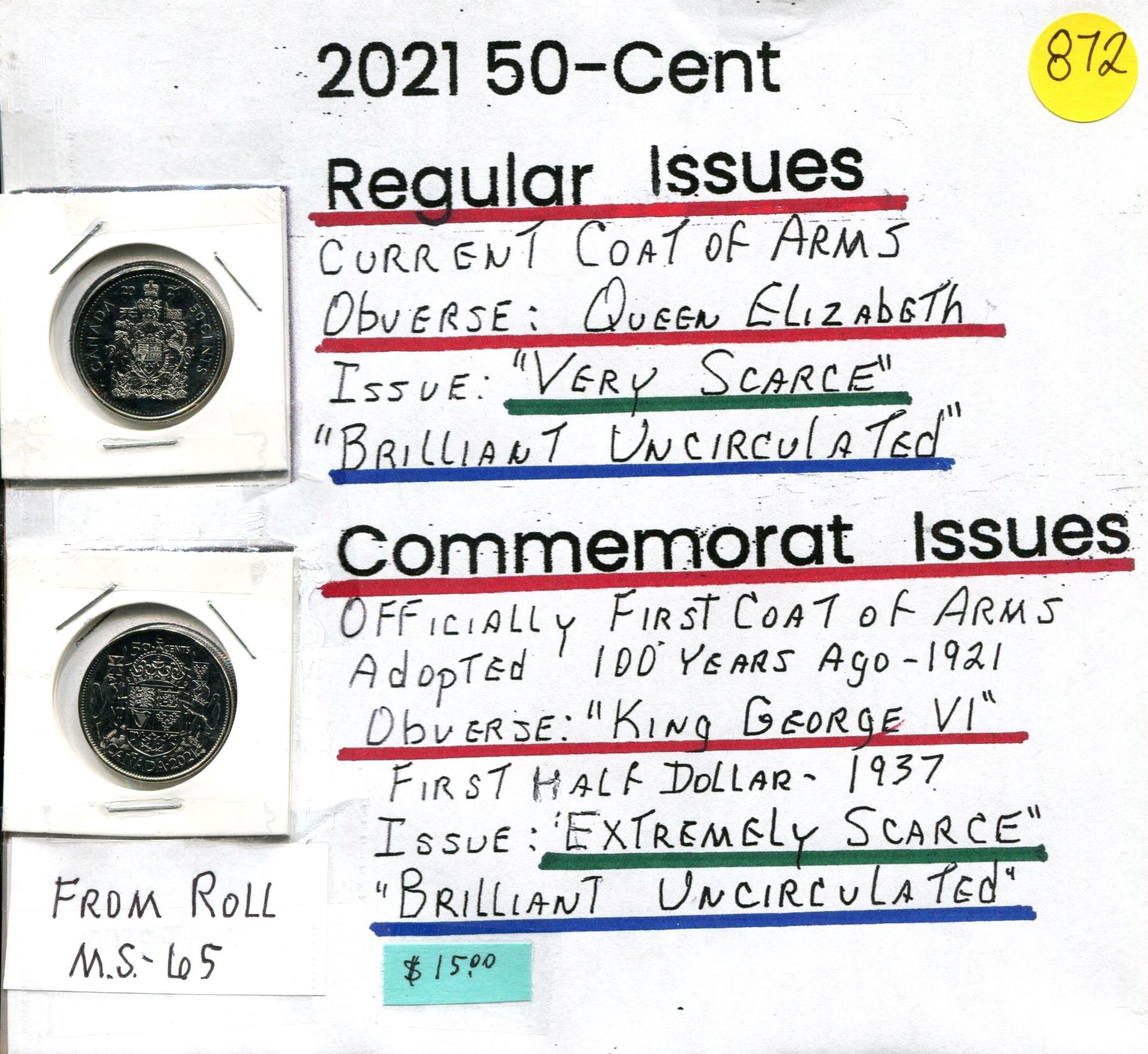 2021 50¢ (2) - Current Coat of Arms & Commemorative First Coat of Arms