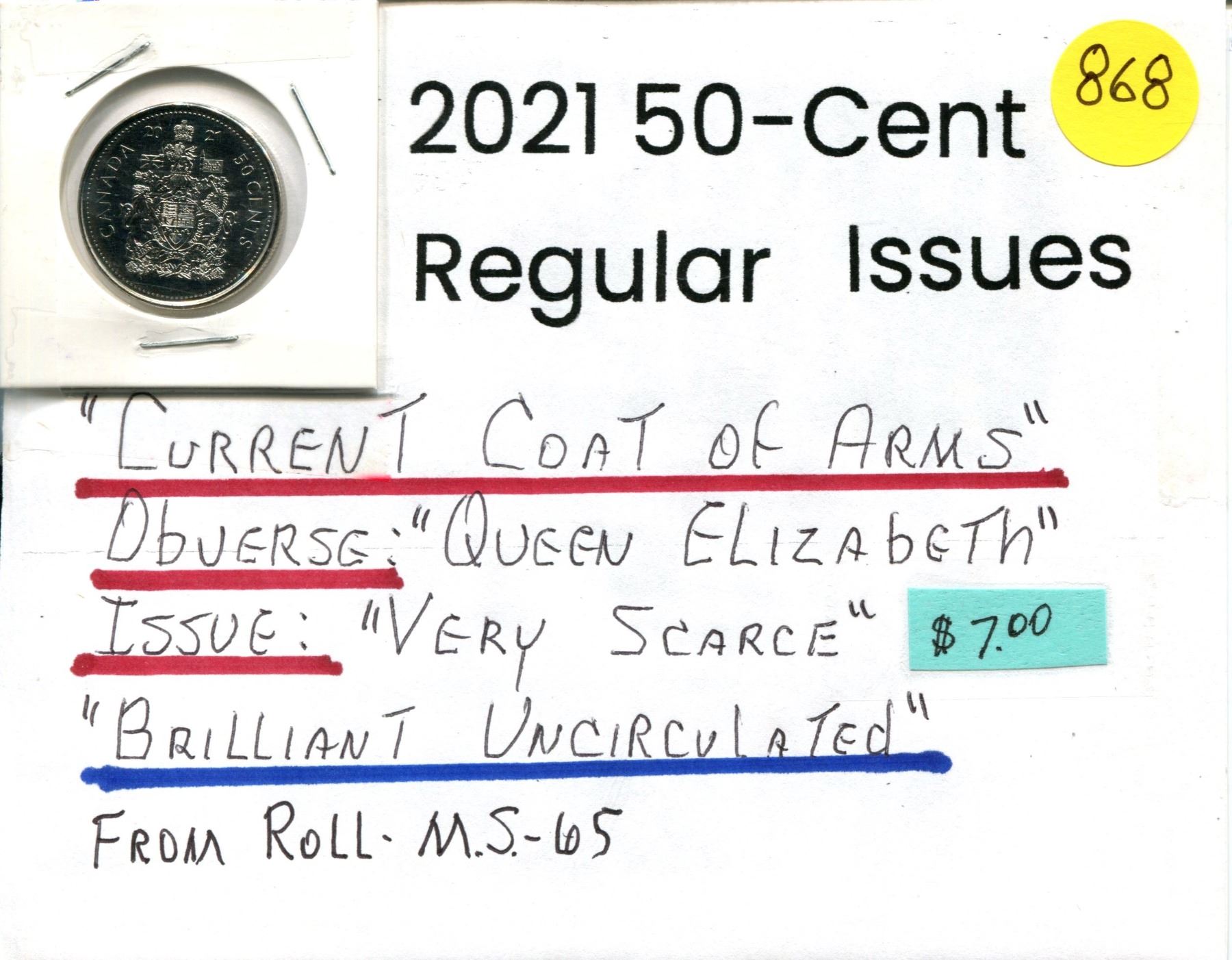 2021 50¢ - Current Coat of Arms Regular Issue