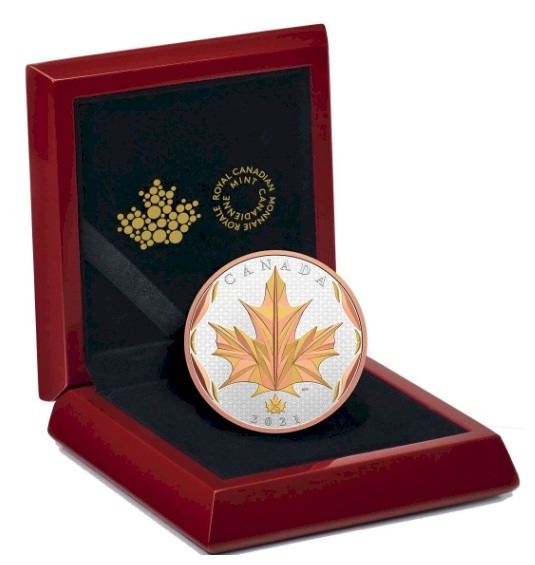 2021 $50 Maple Leaves in Motion - Pure Silver Coin. Tax Exempt.