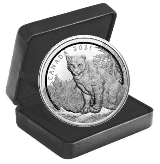 2021 $50 Multilayered Cougar - Pure Silver Coin. Tax Exempt.