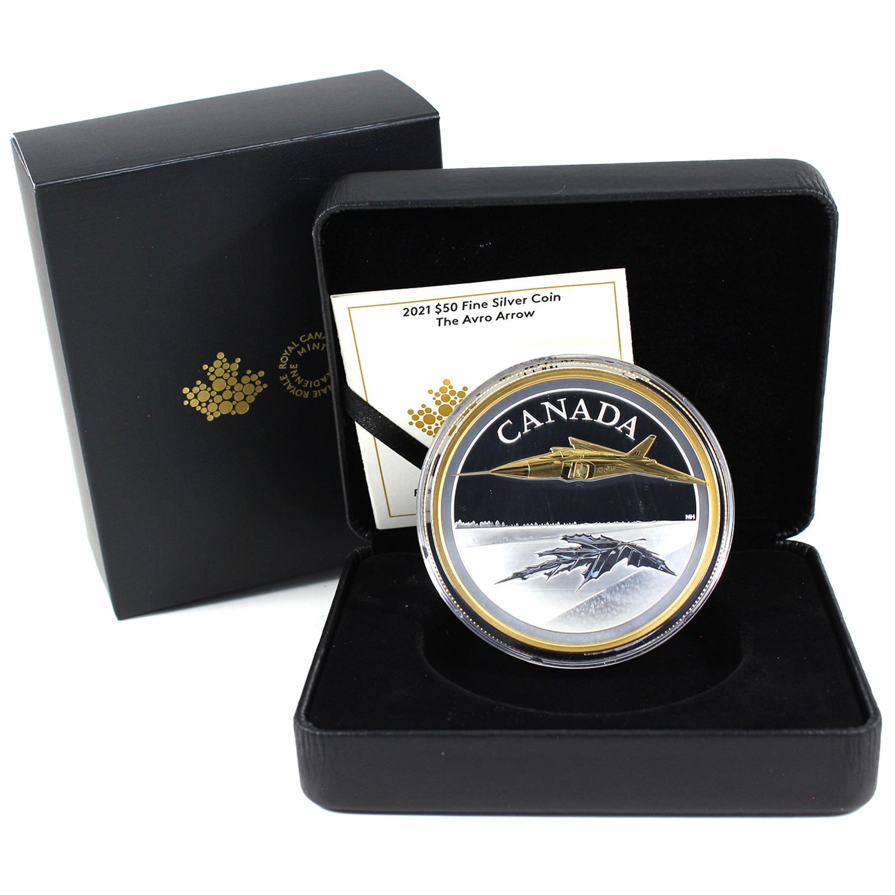 2021 $50 The Avro Arrow, Fine Silver With Selective Gold Plating. Low Mintage of Only 1000!! Scratched capsule. (Tax Exempt)