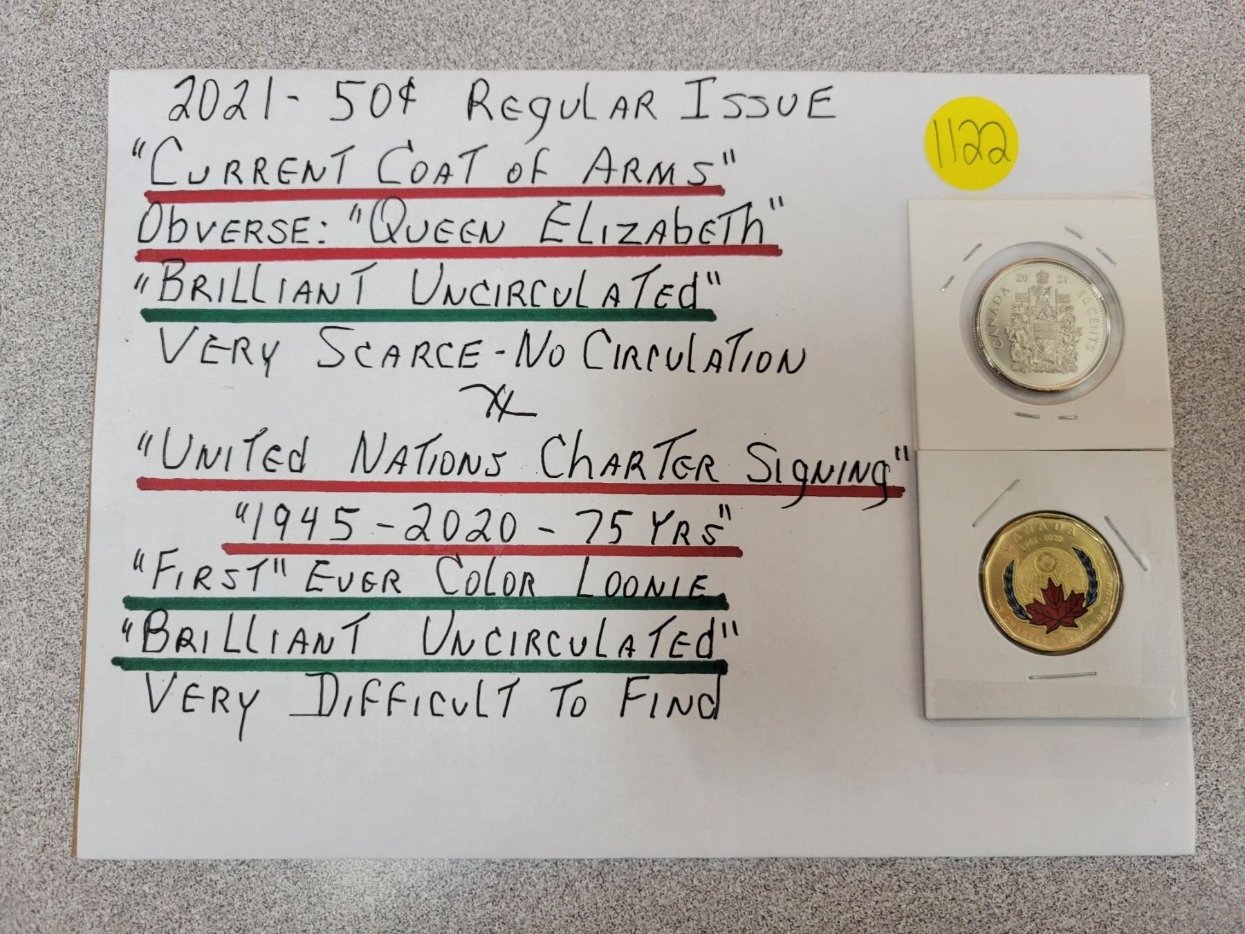 2021 50¢ regular issue & United Nations Charter signing first ever color loonie