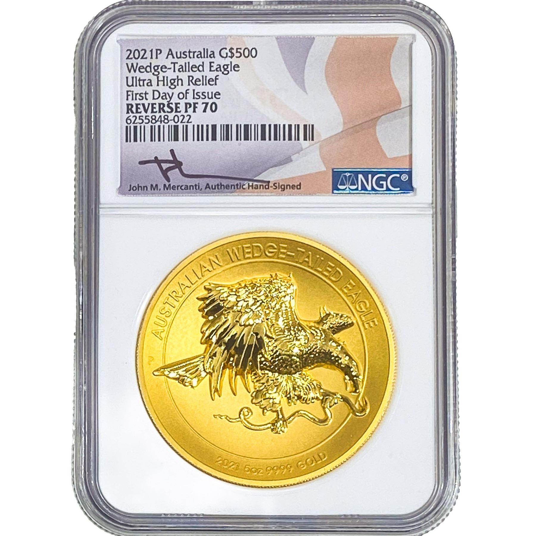2021 AUS 5oz Gld Wedge Eagle UHR NGC PF70 FDI Merc